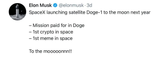 On April Fool's Day on April 1, Musk tweeted that he would use a SpaceX rocket to send Dogecoin to the moon. "To the moon" became the slogan of Dogecoin, and the price of Dogecoin continued to soar that day.